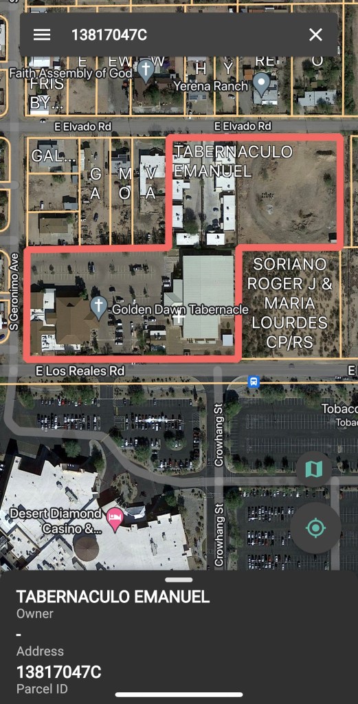 Screenshot of tax reportable real estate for Tabernaculo Emanuel below. https://www.to.pima.gov/propertySearch/